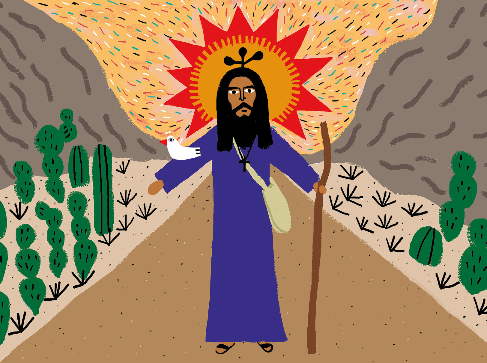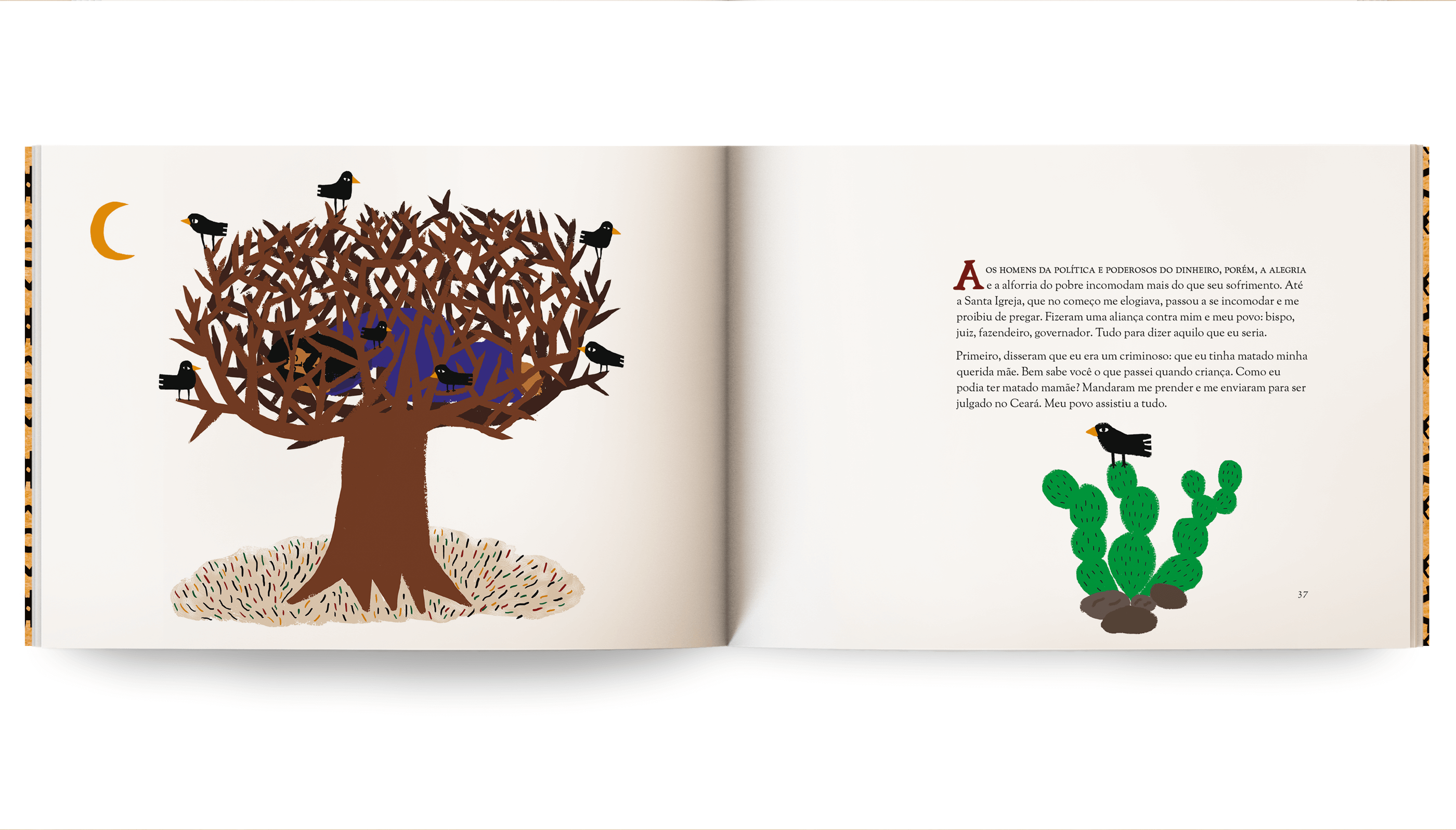 A ilustração cumpre mais do que acompanhar o texto narrativo, com um estilo que nos remete ao sertão nordestino, cada página mostra paisagens das cidades narradas e as cenas históricas que são descritas. A ilustradora apresenta sua percepção da história com cores fortes, mas muito próximas às paisagens áridas, com muitos tons do marrom em contraste com o colorido das casas e roupas, entre outros elementos.