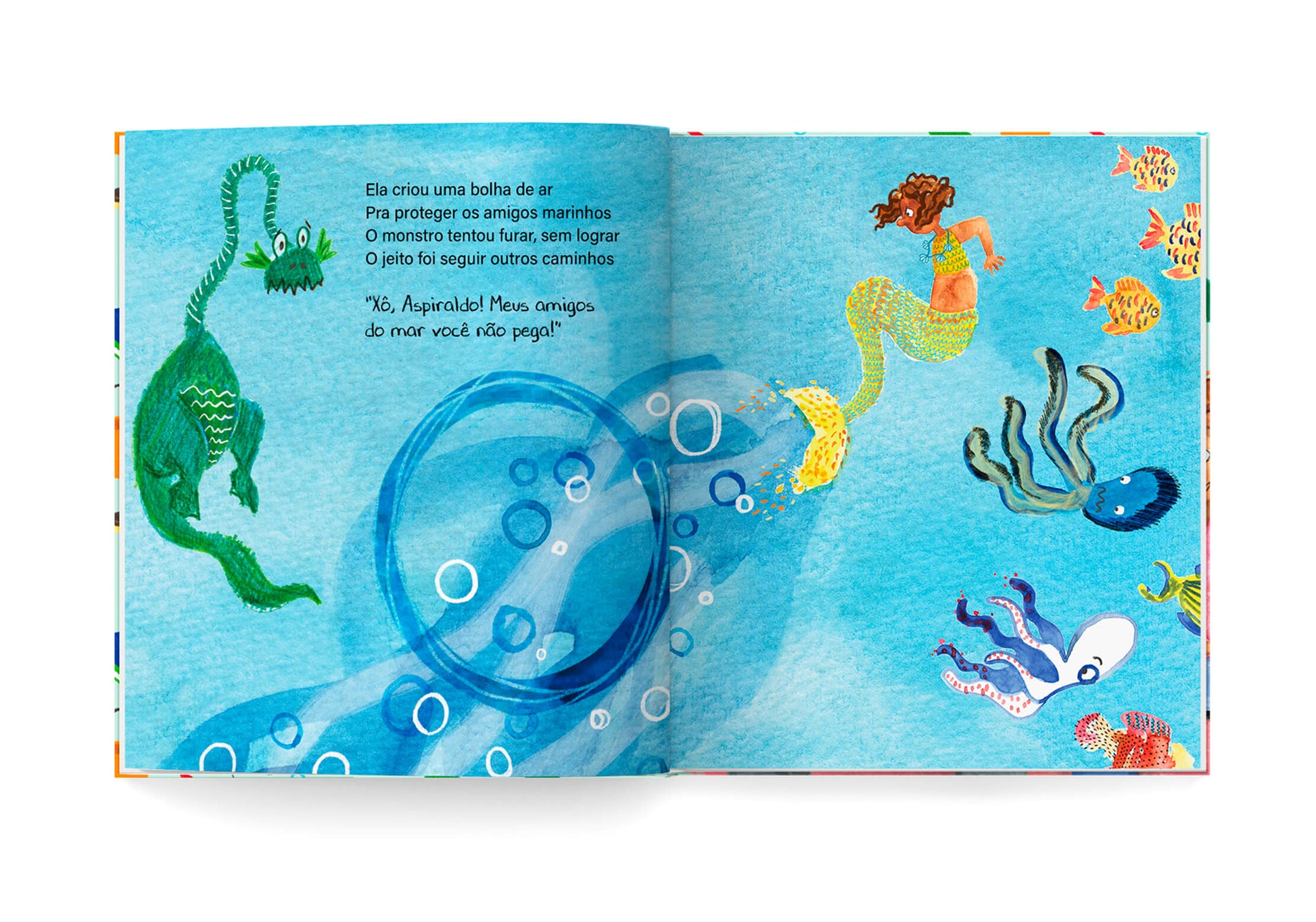 Serena é uma menina muito imaginativa. Enquanto o pai aspira os diversos espaços da casa, Serena se transforma ora em rainha, ora em sereia, bailarina ou fada, lutando com seus amigos imaginários contra um temível monstro de nariz longo que tudo quer sugar. Em uma narrativa sonora e cheia de rimas, “A Incrível Serena Contra o Temível Aspiraldo” nos leva ao universo infantil que transforma o cotidiano do ambiente doméstico em fantasia, sorrisos e muito afeto.