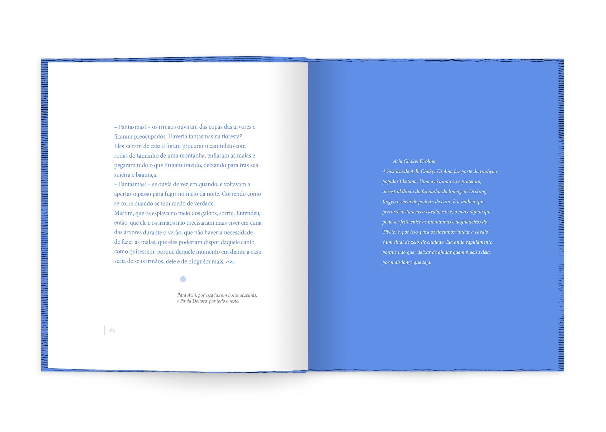 O livro conta a história de Jacinta, uma menina que perde a mãe muito repentinamente e se torna responsável por cuidar de sua família. Ela procura sempre encontrar um jeito amoroso e divertido para entreter seus irmãos, muitas vezes, por meio de histórias únicas. Jacinta ri com seus irmãos e seu pai quando ele consegue chegar cedo do trabalho e jantam juntos. Jacinta é um bichinho estranho, num mundo onde as outras crianças têm mãe. Jacinta não tem um anjo da guarda, mas uma mulher que viaja em um cavalo azul e sempre olha por ela.
